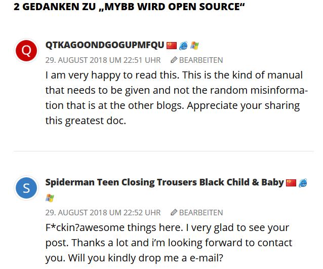 Euphorische (Spam-)Kommentare auf Blogbeiträge
