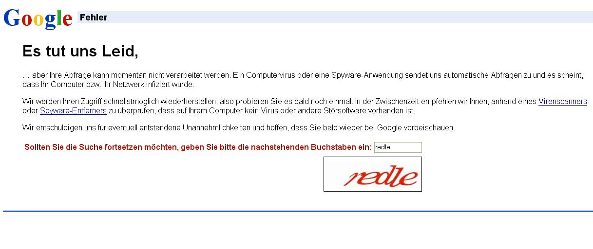 Bei Google scheint also eine Art Heuristik bei schnellen hintereinanderfolgenden Abfragen zuzuschlagen, ob das aber wirklich der Fall ist, habe ich nicht weiter getestet. Amüsant und bloggenswert sind solche aber Meldungen trotzdem 😉