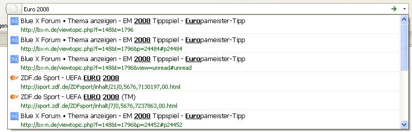 Die großartige neue Adressleiste in Firefox 3 bietet nunmehr nicht nur Zugriff auf die bereits besuchten Adressen, sondern durchforstet auch Seitentitel in der History sowie die neu eingeführten Tags (dazu später mehr). Dadurch wird es deutlich einfacher, bereits besuchte Seiten zu finden, auch wenn lediglich einige Fragmente in Erinnerung geblieben sind. Anfangs wirkt die Größe eines einzelnen Eintrages in der Leiste etwas zu groß, aber nach ersten Surftouren stellt man dann doch fest, dass diese Wahl optimal zur Übersichtlichkeit beiträgt (anders als in Opera 9.5, hier sind Einträge unterschiedlich groß).