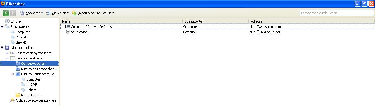 Lesezeichenverwaltung: 1, 2, 3 – gespeichert!