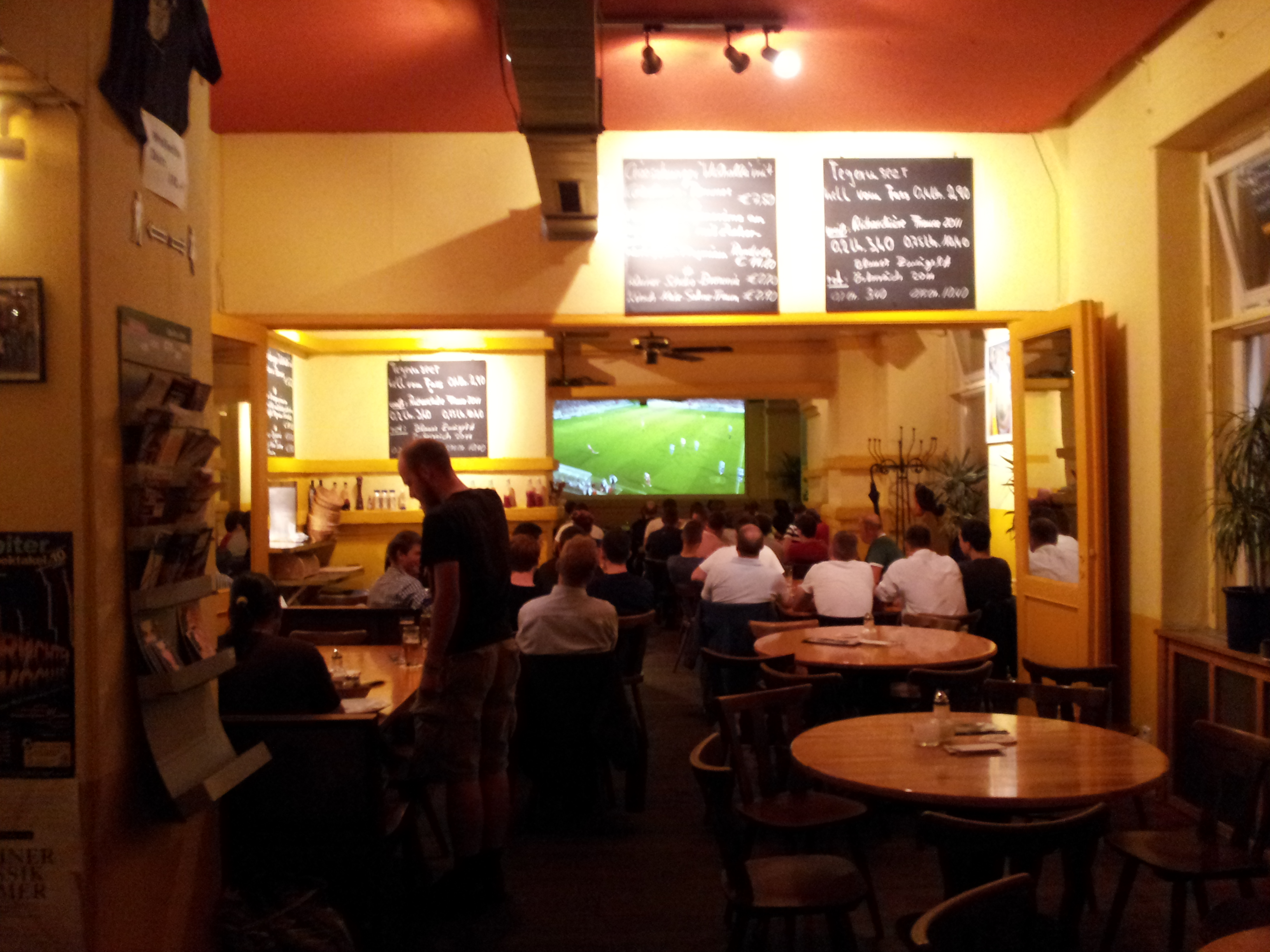 In Berlin gibt es immer etwas zu entdecken. Mithilfe von Google Maps stößt man schnell auf passende Locations. Durch Zufall bin ich dadurch gestern auf eine gemütliche Kneipe gestoßen, in der Bundesliga Spiele auf Großleinwand gezeigt werden. Klasse, auch in der Ferne dem Fußball treu bleiben zu können. Der Raum war kurz vor Anstoß auch gut gefüllt, tolle Stimmung! Am späten Abend war jene Kneipe so auch der Ausklangsort des Tages – bei einem Kölsch früh 🙂 Weitere Impressionen wie immer in Bildform.