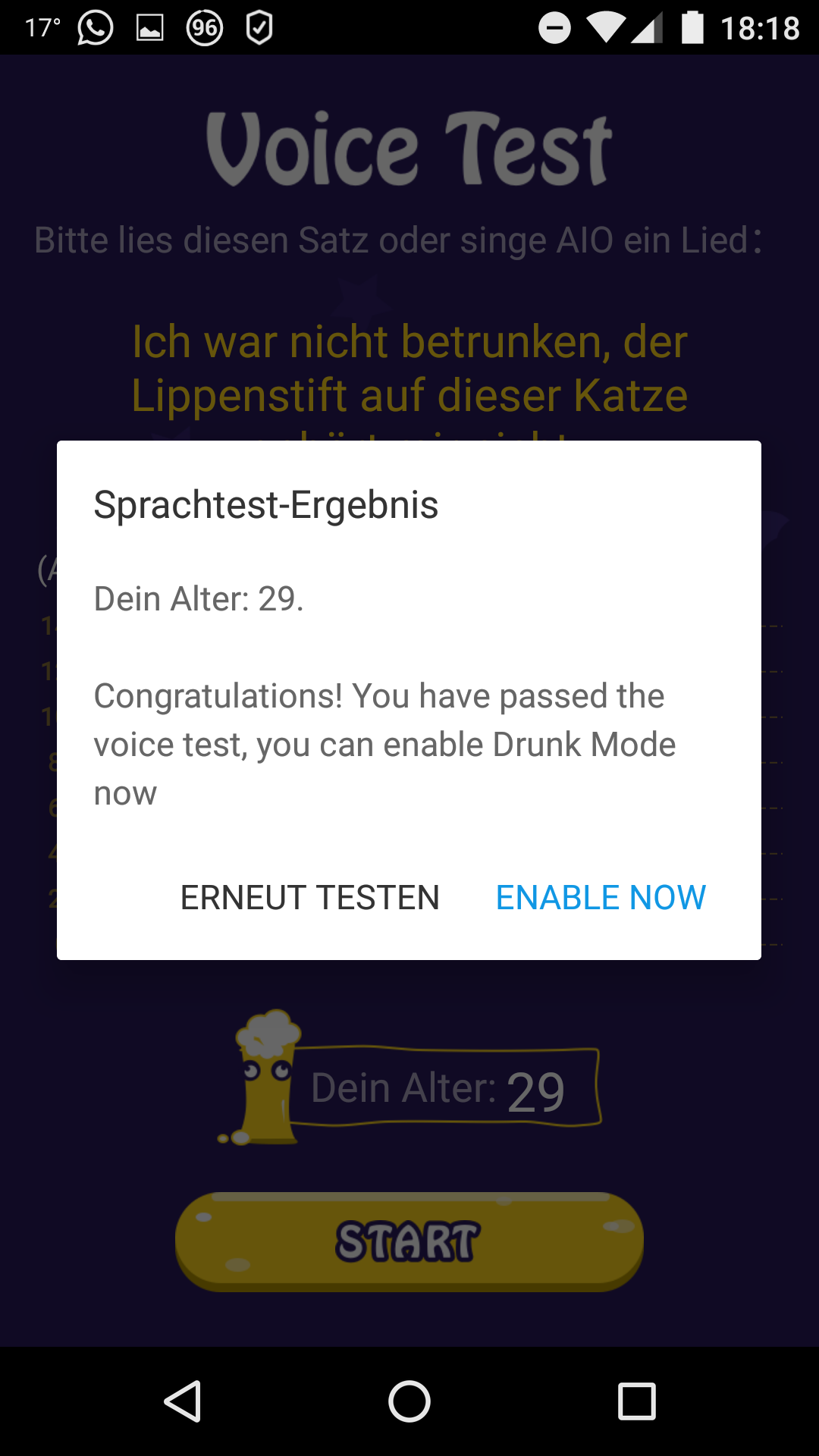Im nüchternen Zustand habe ich den Test dann gerade so mit Ach und Krach bestanden 😉