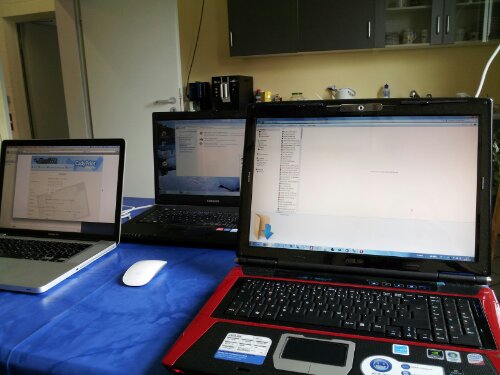Nein, ein MacBook besitze ich noch nicht, auch wenn es sich wirklich schick ins Bild einfügt. Meine „Arbeitsstation“ ist vorne rechts zu erhaschen. Am heutigen Freitag nachmittag nehmen die Arbeiten an der Website eines Unternehmens weiter Wind auf. Da stört auch das regnerische Wetter draußen nicht.