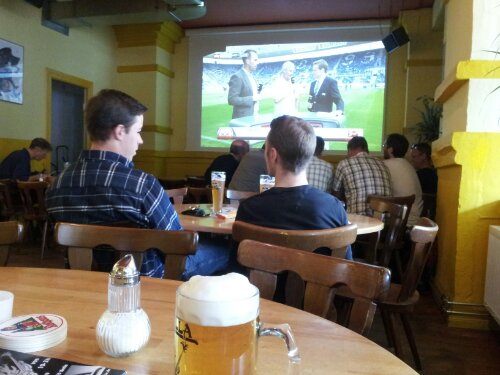 In Berlin gibt es immer etwas zu entdecken. Mithilfe von Google Maps stößt man schnell auf passende Locations. Durch Zufall bin ich dadurch gestern auf eine gemütliche Kneipe gestoßen, in der Bundesliga Spiele auf Großleinwand gezeigt werden. Klasse, auch in der Ferne dem Fußball treu bleiben zu können. Der Raum war kurz vor Anstoß auch gut gefüllt, tolle Stimmung! Am späten Abend war jene Kneipe so auch der Ausklangsort des Tages – bei einem Kölsch früh 🙂 Weitere Impressionen wie immer in Bildform.