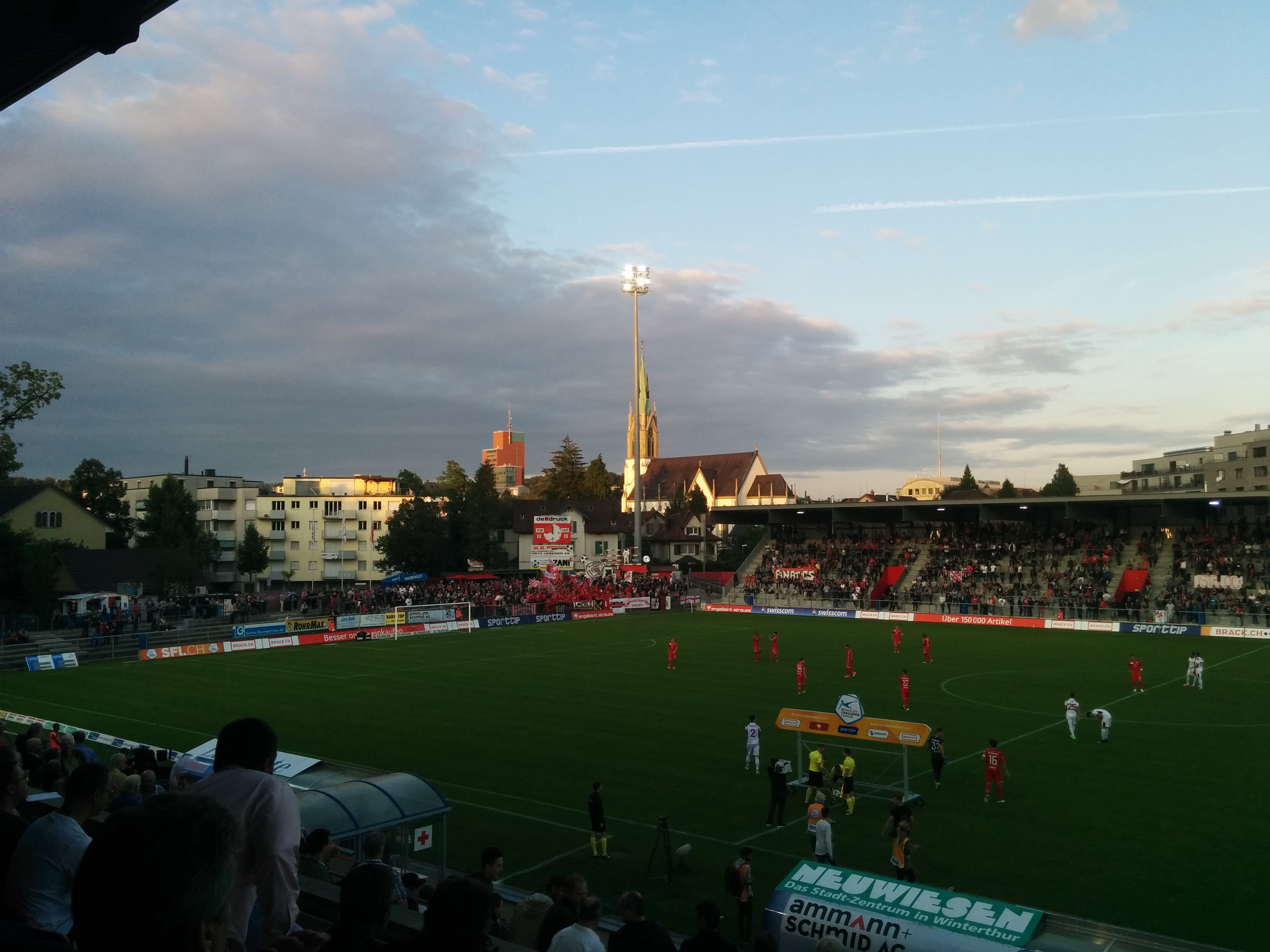 Mit dem letzten Trip zu meiner Schwester in die Schweiz – besser gesagt nach Winterthur – hat es dann auch mal mit dem Stadionbesuch des dortigen FC Winterthur geklappt. Der hiesige Club spielt in der zweiten Liga und ist tabellarisch leider nicht ganz vorne mit dabei. Dennoch hat dies der Stimmung im Schützenwiese Stadion keinen Abbruch getan, denn diese war wirklich ausgesprochen toll!