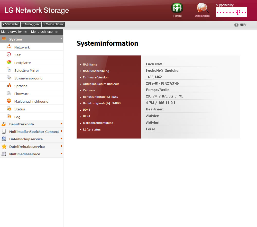Mit einiger Vorfreude intus war es gestern soweit, das NAS Gerät war bei der Post abholbereit. In manchen Situationen fühlt man sich einfach wie ein großes Kind, auch diesmal war das Unboxing eine heiden Freude und als das Gerät schließlich an der richtigen Ecke stand – neben dem Router – und die Installation begann, war der Moment gekommen, die Heimcloud einzuläuten. Cloud? Jein, FuchsCloud habe ich das Ding ganz bewusst nicht genannt. Ganz ehrlich: auch wenn die Cloud heute ganz im Trend liegt und unbestritten viele Vorteile hat, geht mir das ganze Gedöns manchmal auch derbe auf den Senkel. In gewissen Bereichen, und da zählen ganz groß die Daten zuhause mit dazu, bin ich ganz froh, keine Cloud in die Hände nehmen zu müssen. Und so nennt sich das Gerät nun doch FuchsNAS – eine neutralere Bezeichnung. Aber nun gut, so polarisierend wollte ich eigentlich gar nicht sein, rücken wir wieder das Gerät in den Mittelpunkt. Die ersten Eindrücke sind durchaus verheißungsvoll. Erfahrungswerte kann ich zwar noch nicht präsentieren, die ersten Schritte liefen aber reibungslos ab. Erste kleine Bilder auf dem Smartphone haben bereits ihren Weg auf das NAS gefunden, der große Datenumzug steht jedoch noch auf der ToDo Liste. Ein kleiner Minuspunkt hat sich bei der Telekom-Version jedoch schon herauskristallisiert: die Firmware hinkt etwas der offiziellen hinterher, man kann jedoch jederzeit auf die originale Firmware umsteigen, die mit einer runderneuerten GUI lockt. Bleibt zu hoffen, dass es diese auch in Bälde in die Telekom-Version schafft. Ansonsten wirkt das Ding relativ stylisch, zwei kleine Bilder sollen das sowohl von der Geräteseite als auch von der Weboberfläche her verdeutlichen. Weitere Eindrücke folgen dann mit dem breiteren Einsatz 🙂