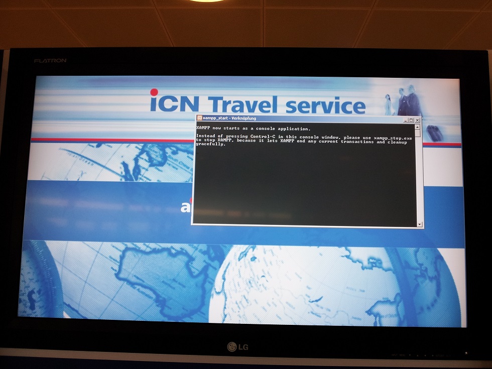Manchmal passiert es ganz beiläufig, dass wir einen Einblick in die technischen Hintergründe alltäglicher Gegenstände erhalten. So geschehen neulich an der Raststätte. An einer dort platzierten Werbefläche war ein Fensterchen zu sehen, das einen Rückschluss auf den Einsatz der beliebten XAMPP-Umgebung lieferte.