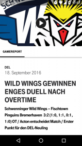 Mein erster Eindruck fällt positiv aus: die App ist übersichtlich und enthält die notwendigsten Dinge. Klar, natürlich darf man keine Berichterstattung wie bei der Bundesliga erwarten, aber die DEL hat eben einen ganz anderen Zuschauerkreis. Hier und da scheint es laut anderen Nutzern noch zu Problemen gekommen sein, aber zu Beginn muss man eben manchmal ein Auge zudrücken. Dass nun wirklich alle Spiele Live übertragen werden, dürfte die wichtigste Botschaft bleiben. So könnte ein Fußballfreier Abend in Zukunft durch einen Eishockey-Abend über Telekom Eishockey von Zuhause aus bequem überbrückt werden. In diesem Sinne: auf geht’s, Wild Wings! 🙂